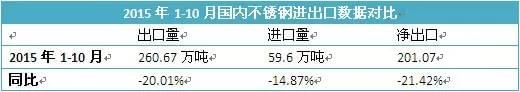 在外界對華316L不銹鋼圓管反傾銷事件頻干擾的境況下,國內(nèi)不銹鋼出口量隨之下降,其中2015年1-10月,國內(nèi)316L不銹鋼凈出口量同比下降21.42%。對于凈出口數(shù)據(jù)的下降,主力原因當然是來自歐洲方面的影響,但我們也要注意到歐洲以外的區(qū)域量同比也出現(xiàn)了不同幅度的下降,因此,可以說國內(nèi)的不銹鋼的出口境遇的不利因素不僅僅是區(qū)域化的,更是全面化的,這樣的全面化的不利影響在未來會進一步加劇,尤其是國內(nèi)于東南亞地區(qū)投資的不銹鋼投產(chǎn)以后。