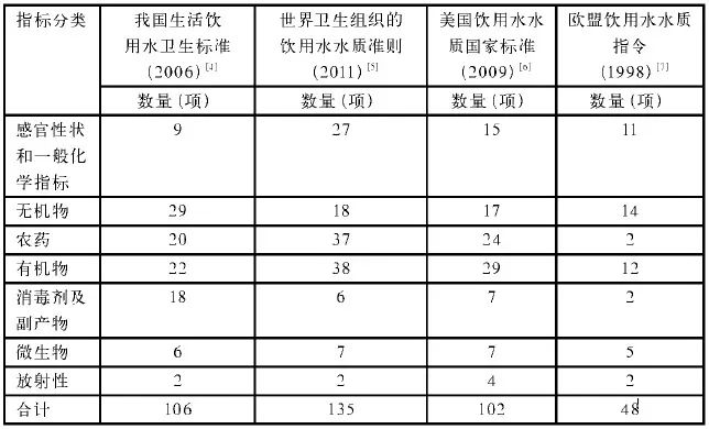 國內(nèi)外飲用水水質(zhì)標(biāo)準(zhǔn)的比較