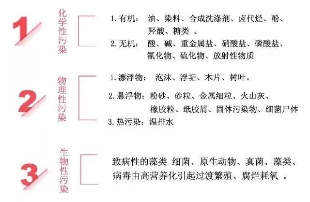 2、化學(xué)污染:當水體受到未經(jīng)凈化處理的各種工業(yè)廢水、廢渣的污染并達到一定濃度時,飲用或食用了這種水或含有這種水的食物時,可導(dǎo)致各種急、慢性中毒,甚至引起癌癥。